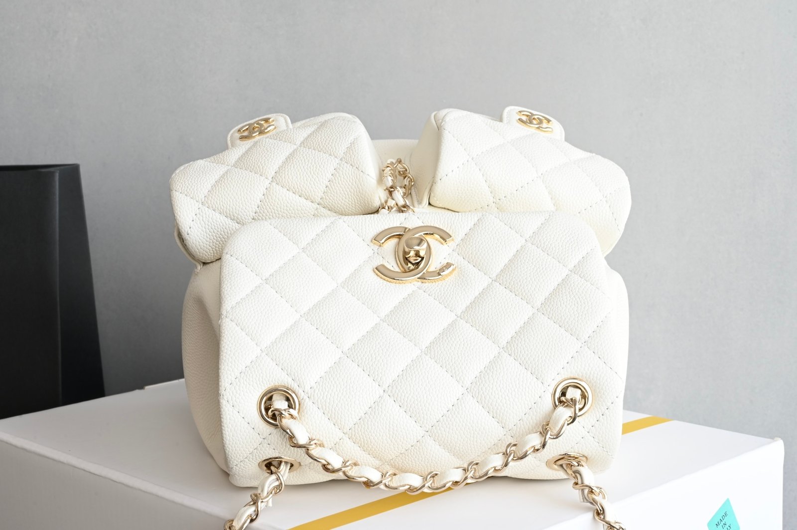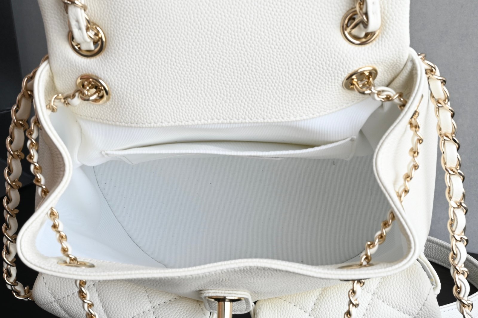 Chanel 𝟐𝟓𝐏 Double Pocket Frog Vintage Backpack White Medium