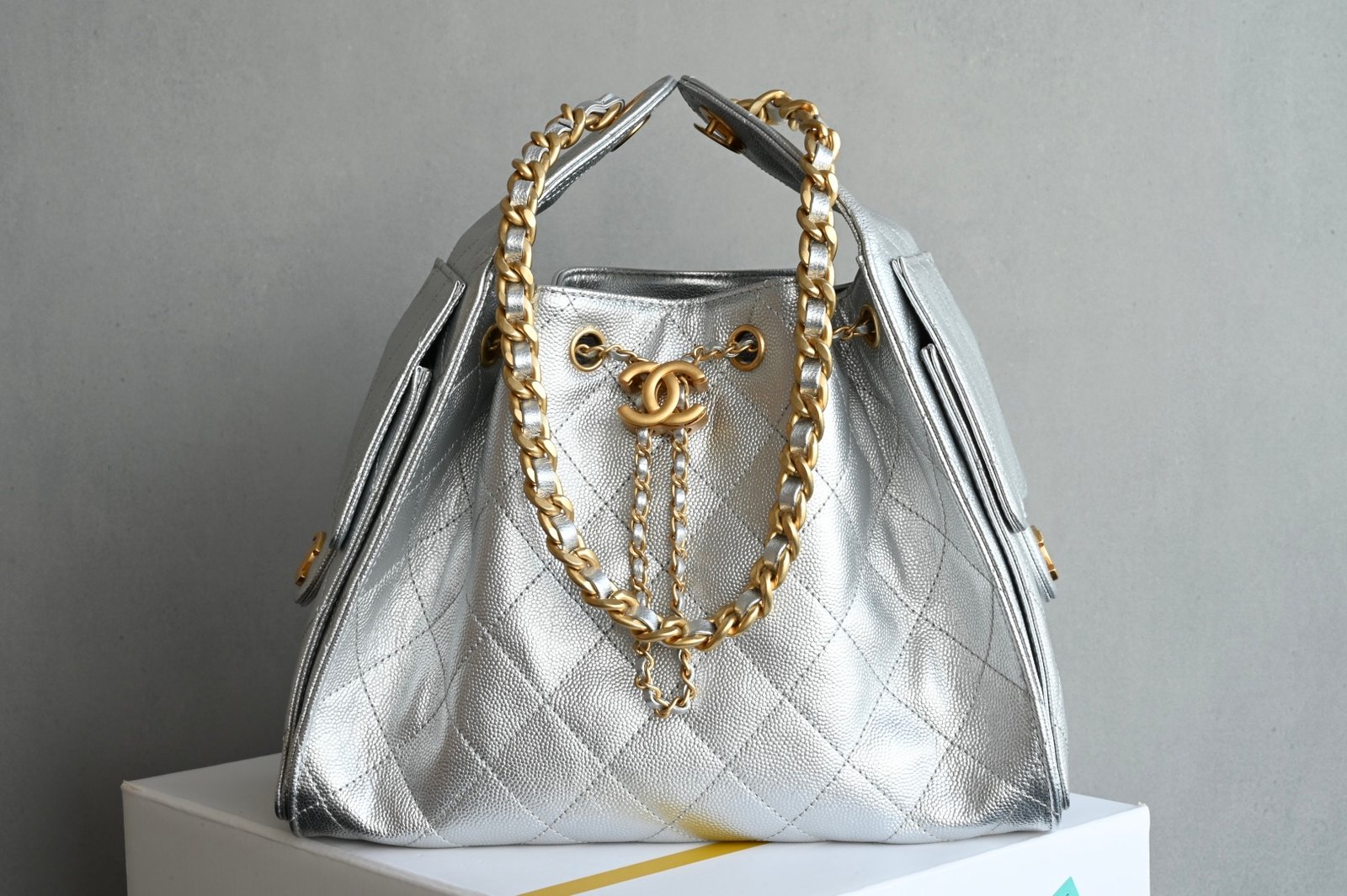 Chanel 𝟮𝟱𝐒𝐁𝐚𝐠 Hippie Shopping Bag Small Silver
