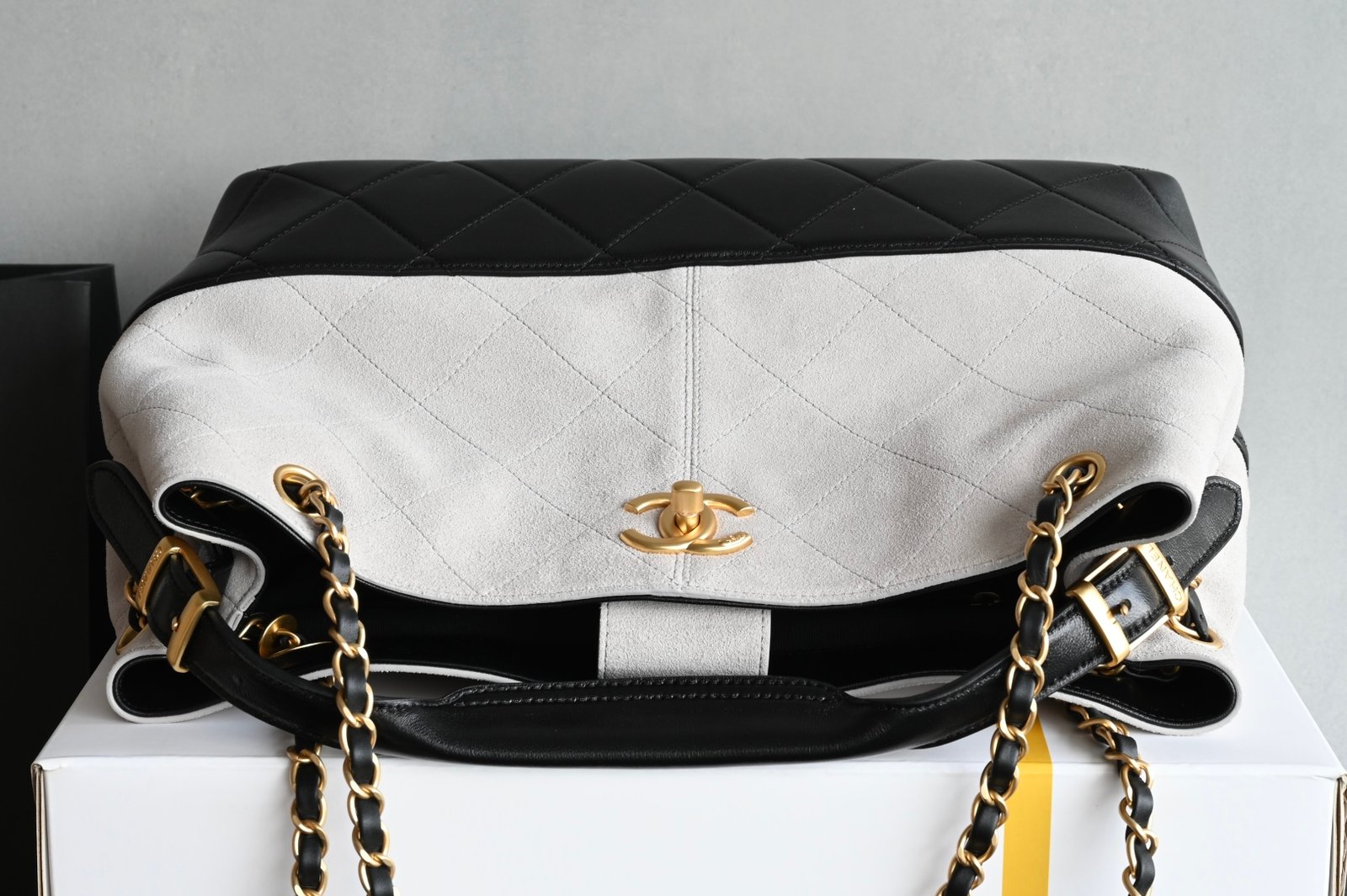 Chanel 𝟮𝟱𝗔 shopping bag𝗁𝗈𝖻𝗈 small size gray and black