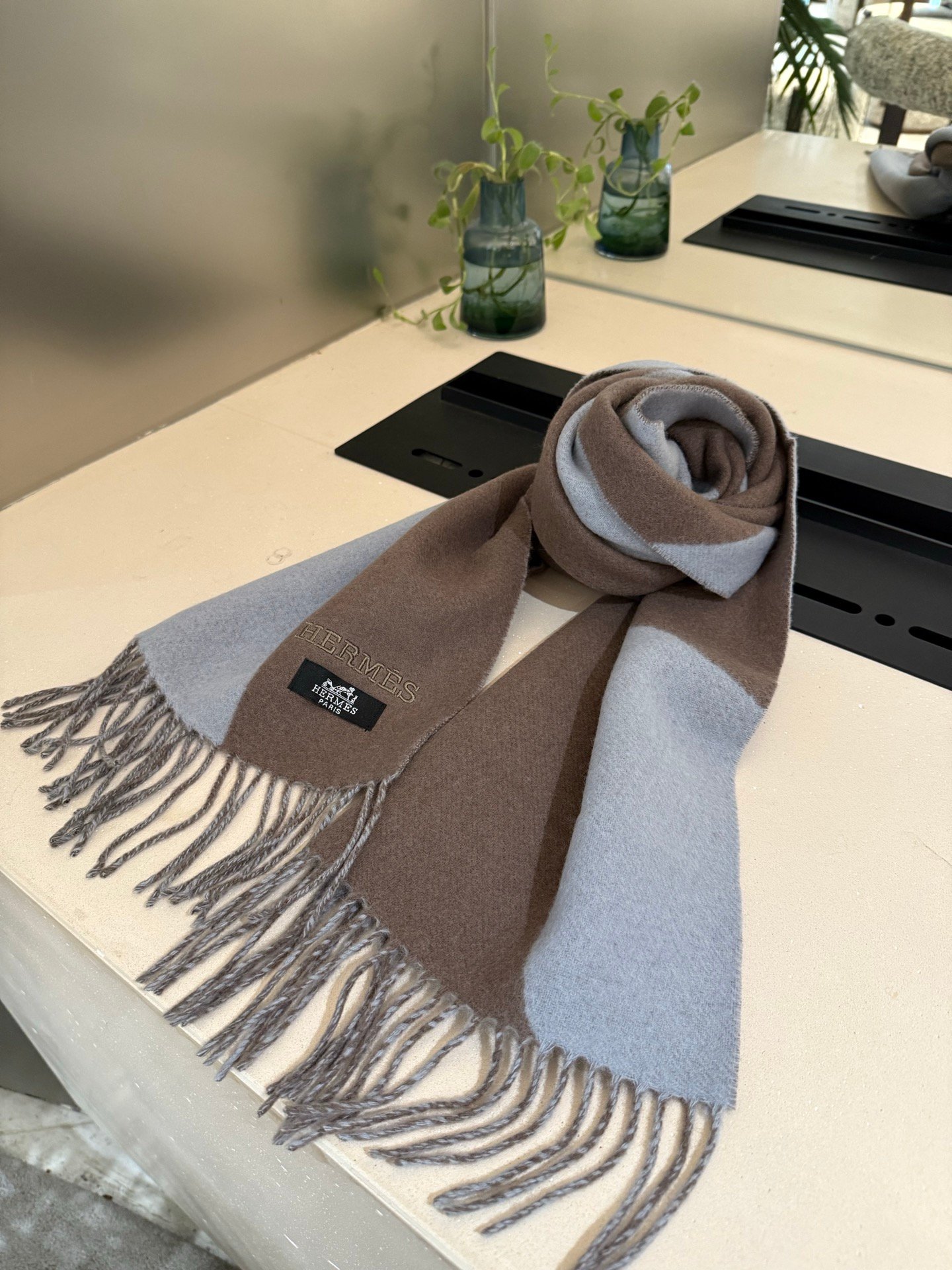 Hermès double-faced cashmere shawl / Specification size: 32*210cm