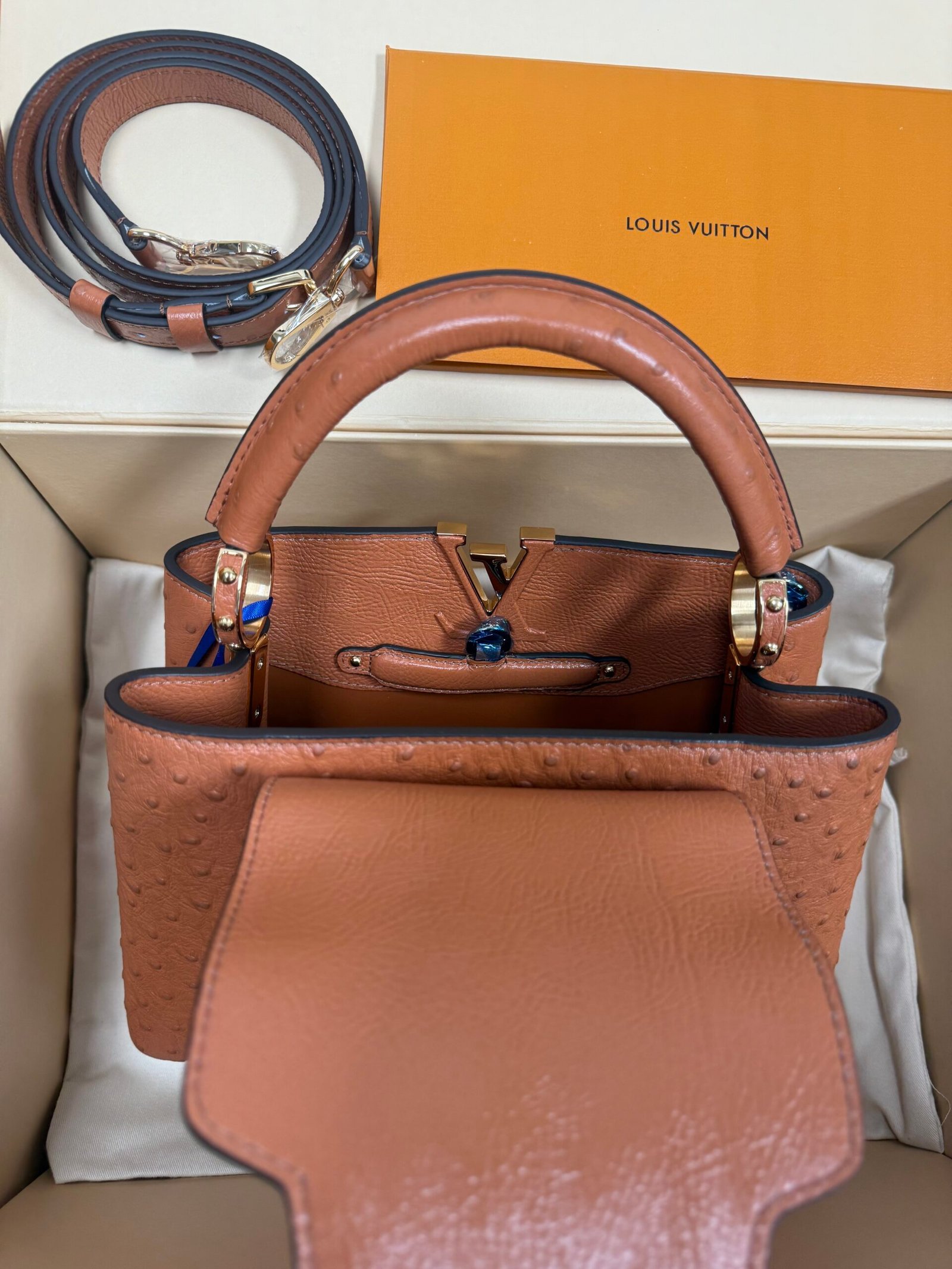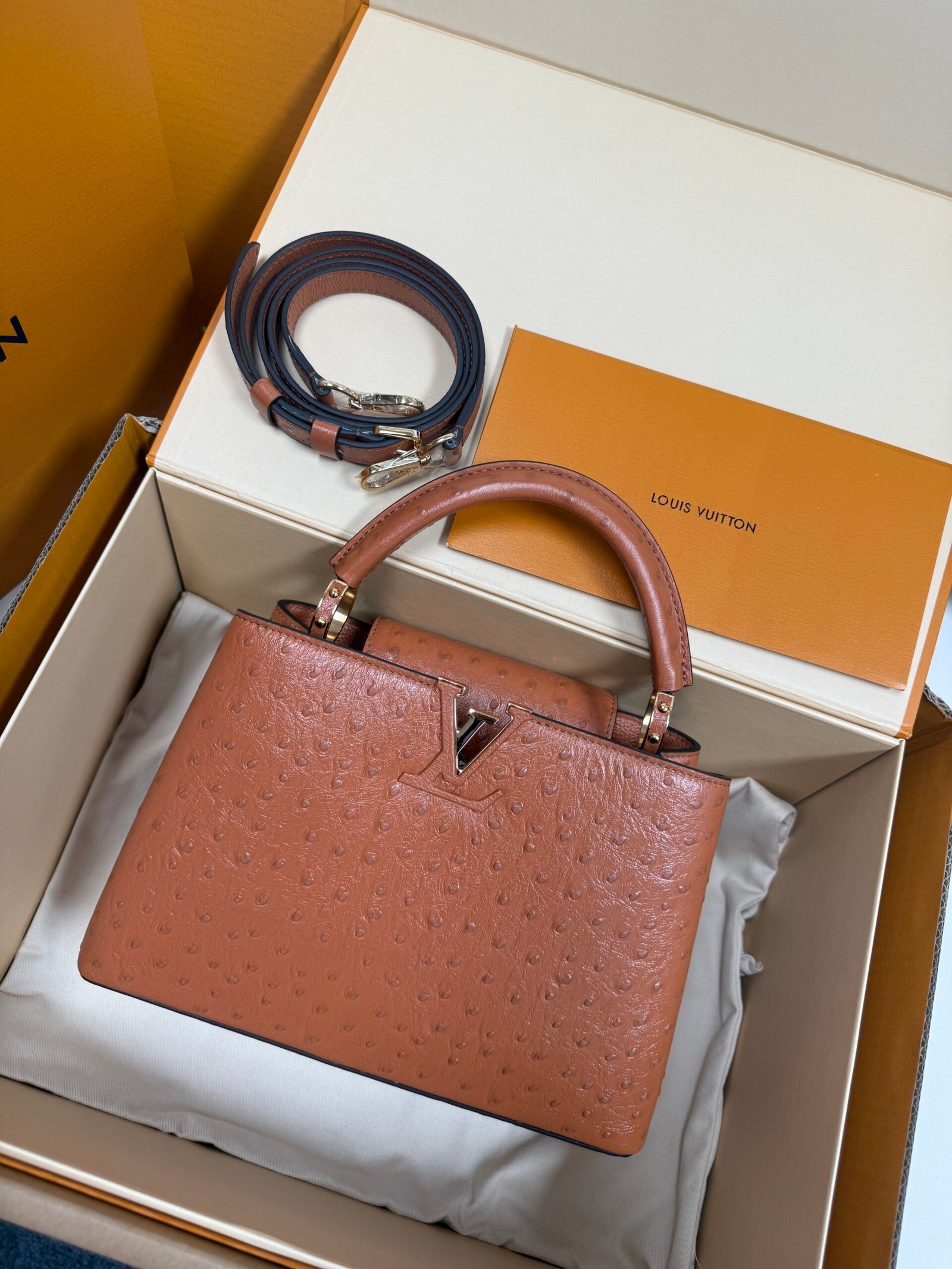 Louis Vuitton Capucines BB Ostrich Leather Handbag Model: M24714 Size: 27cm*18cm*9cm
