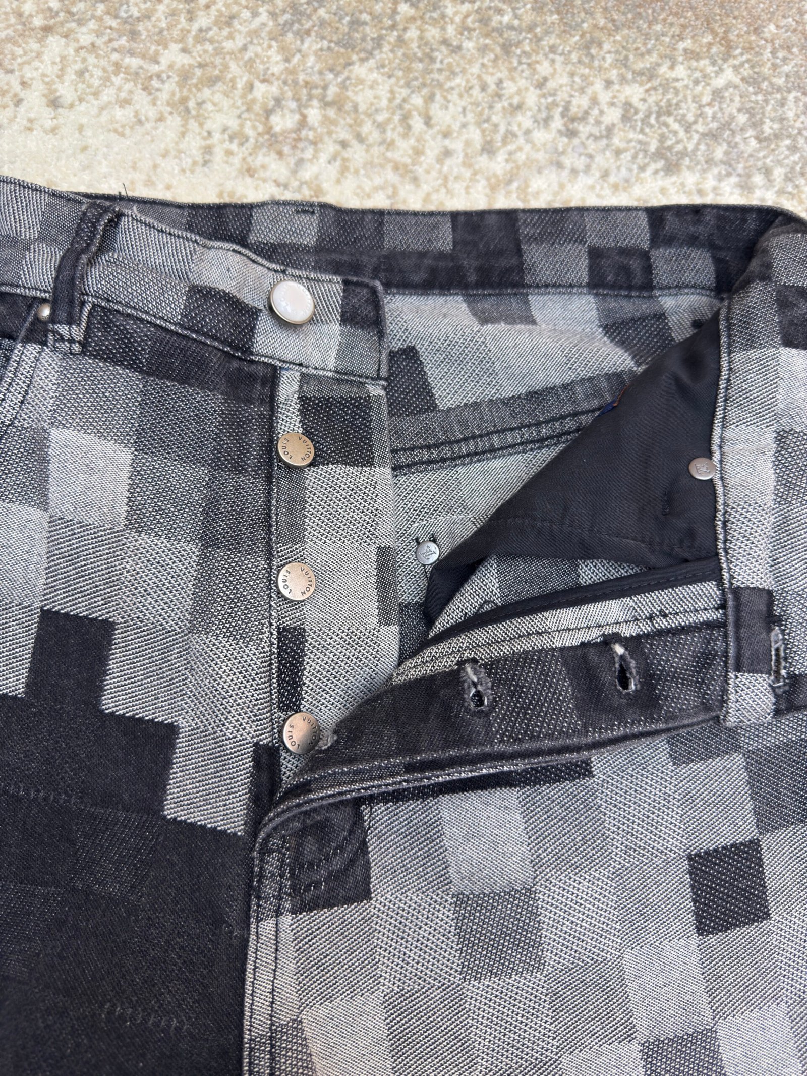 Louis Vuitton checkered mosaic jeans
