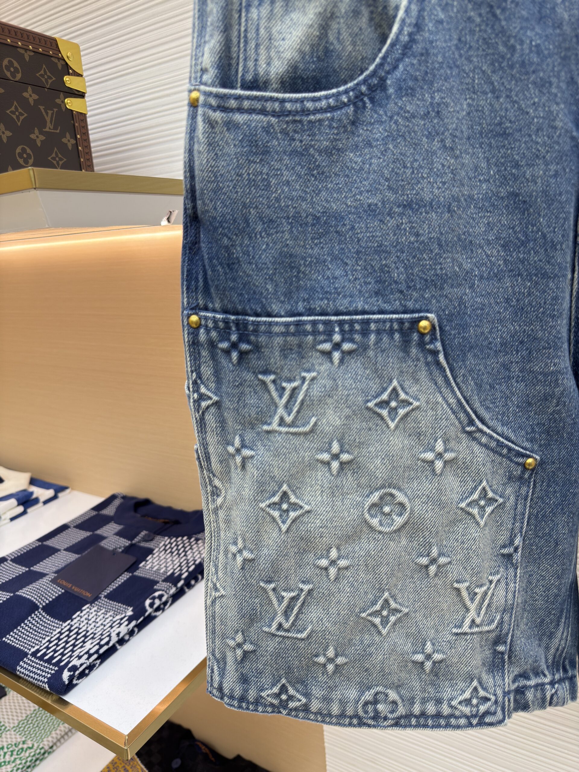 Be the first to review “LOUIS VUITTON embossed denim shorts” Cancel reply
