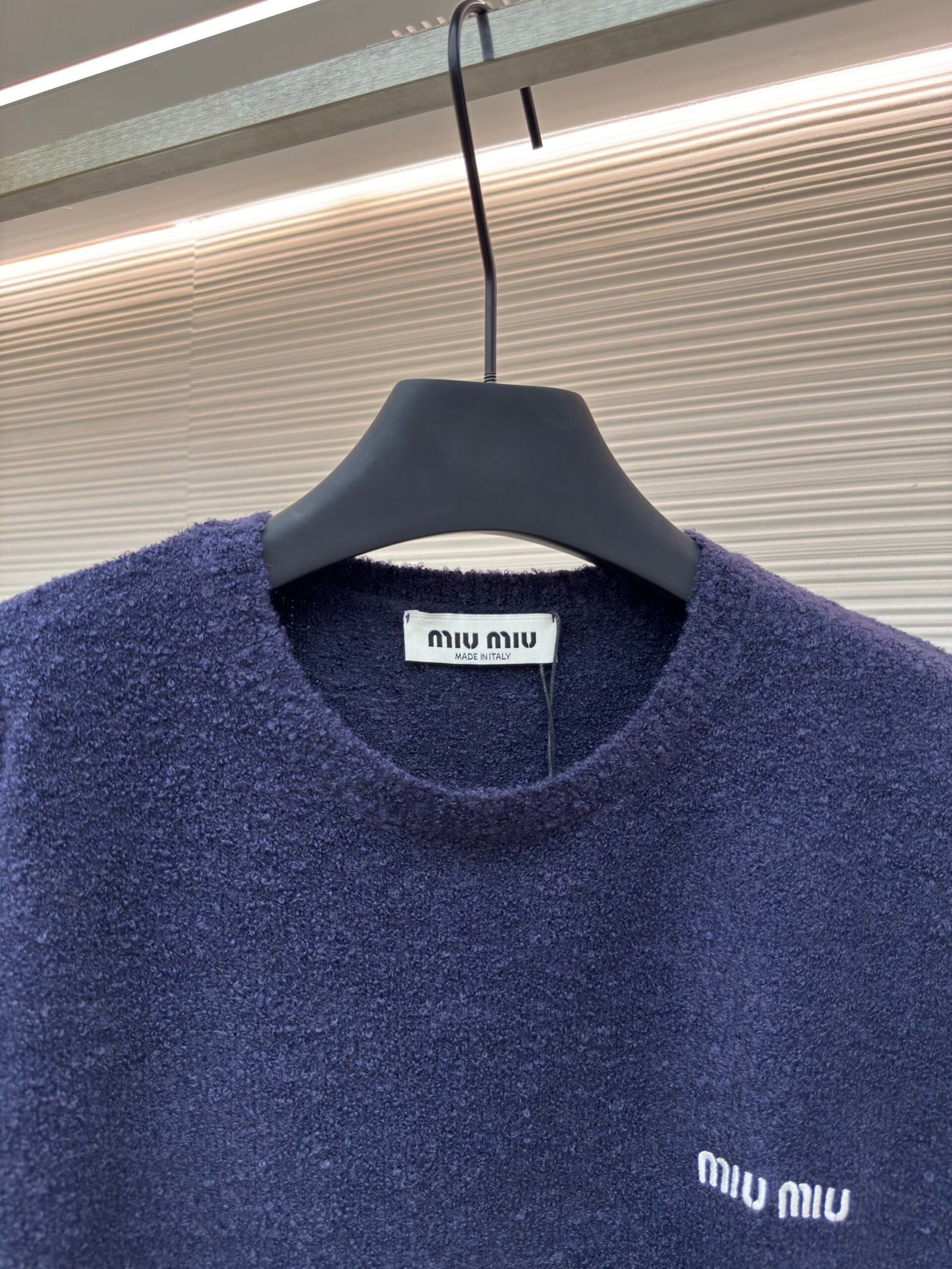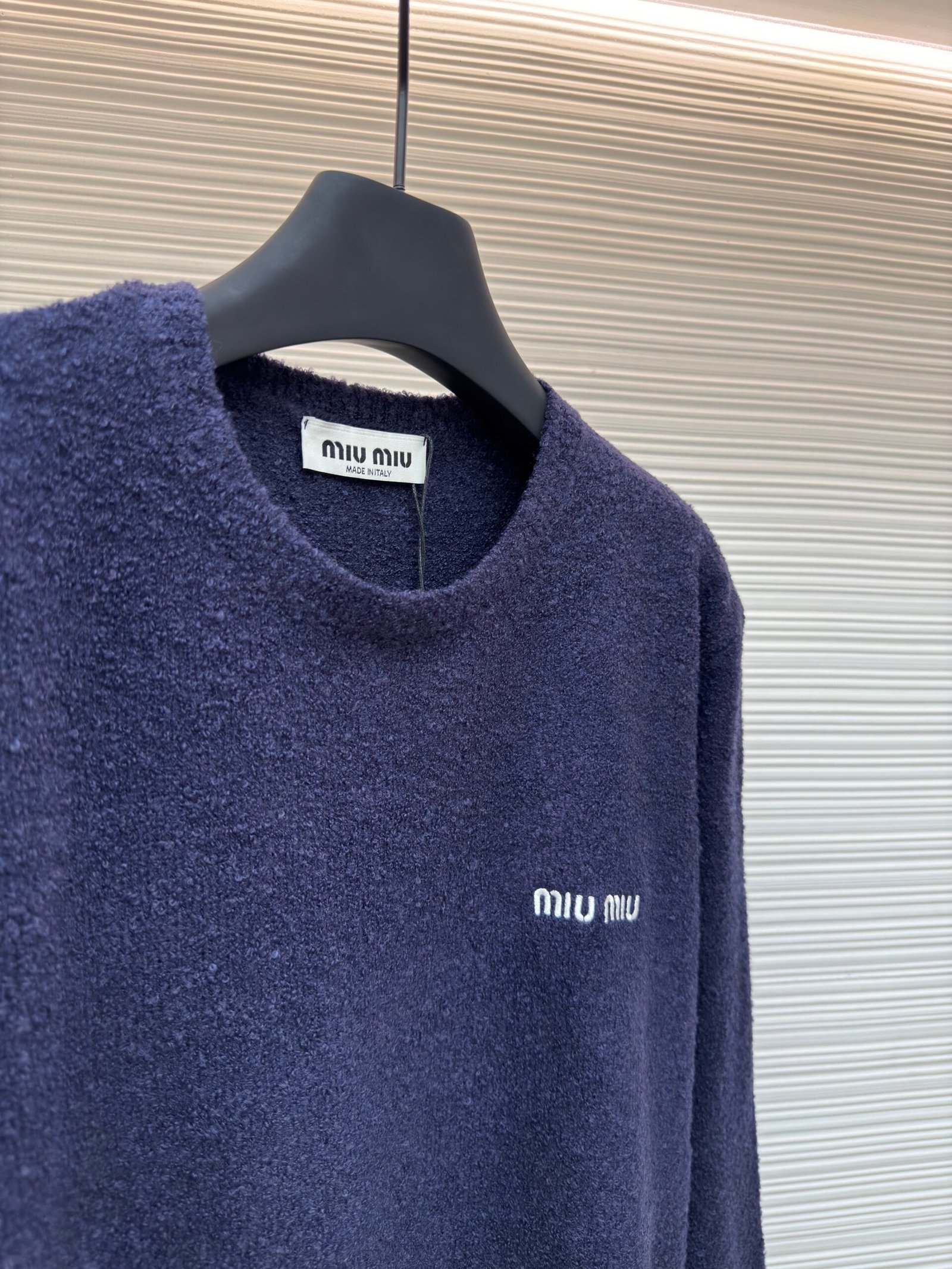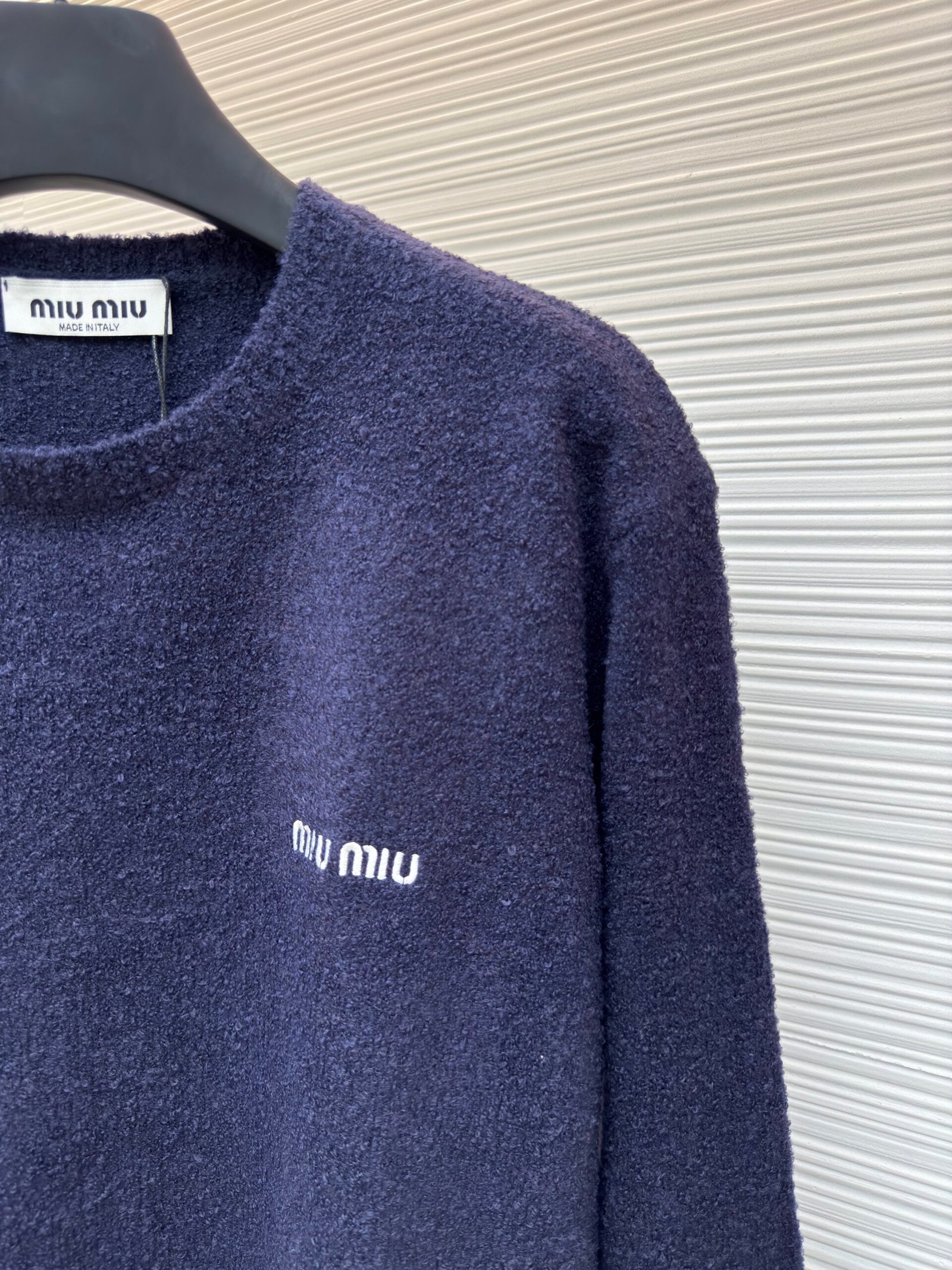 MIUMIU embroidered teddy fur crew neck sweater