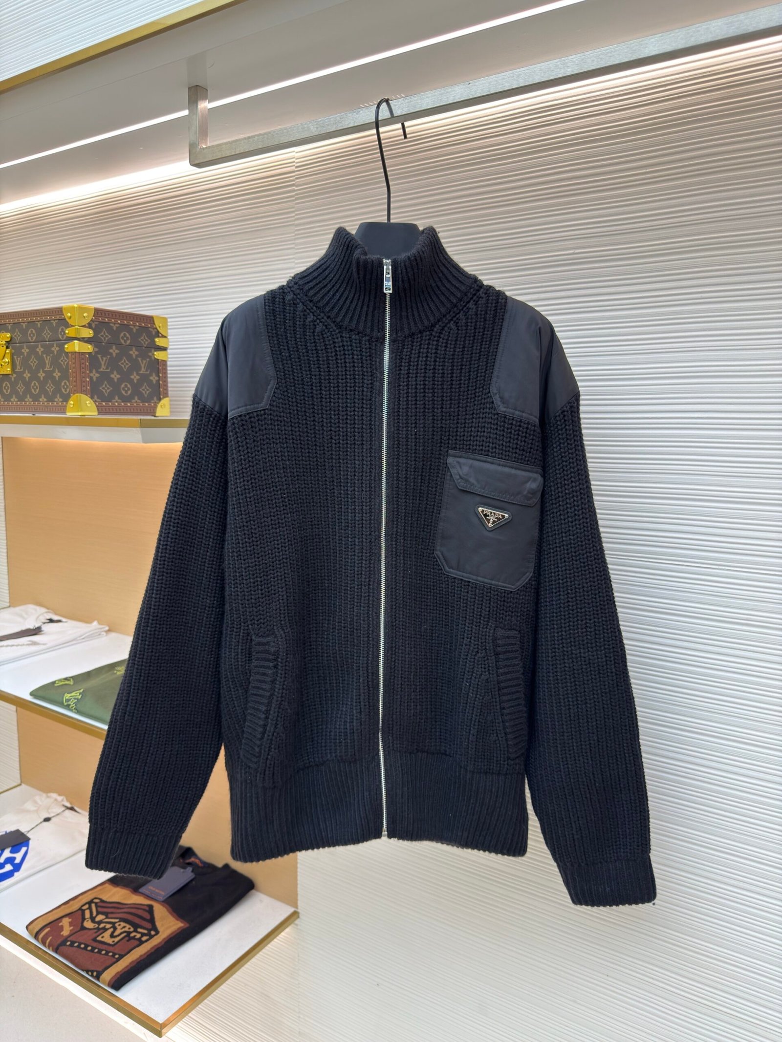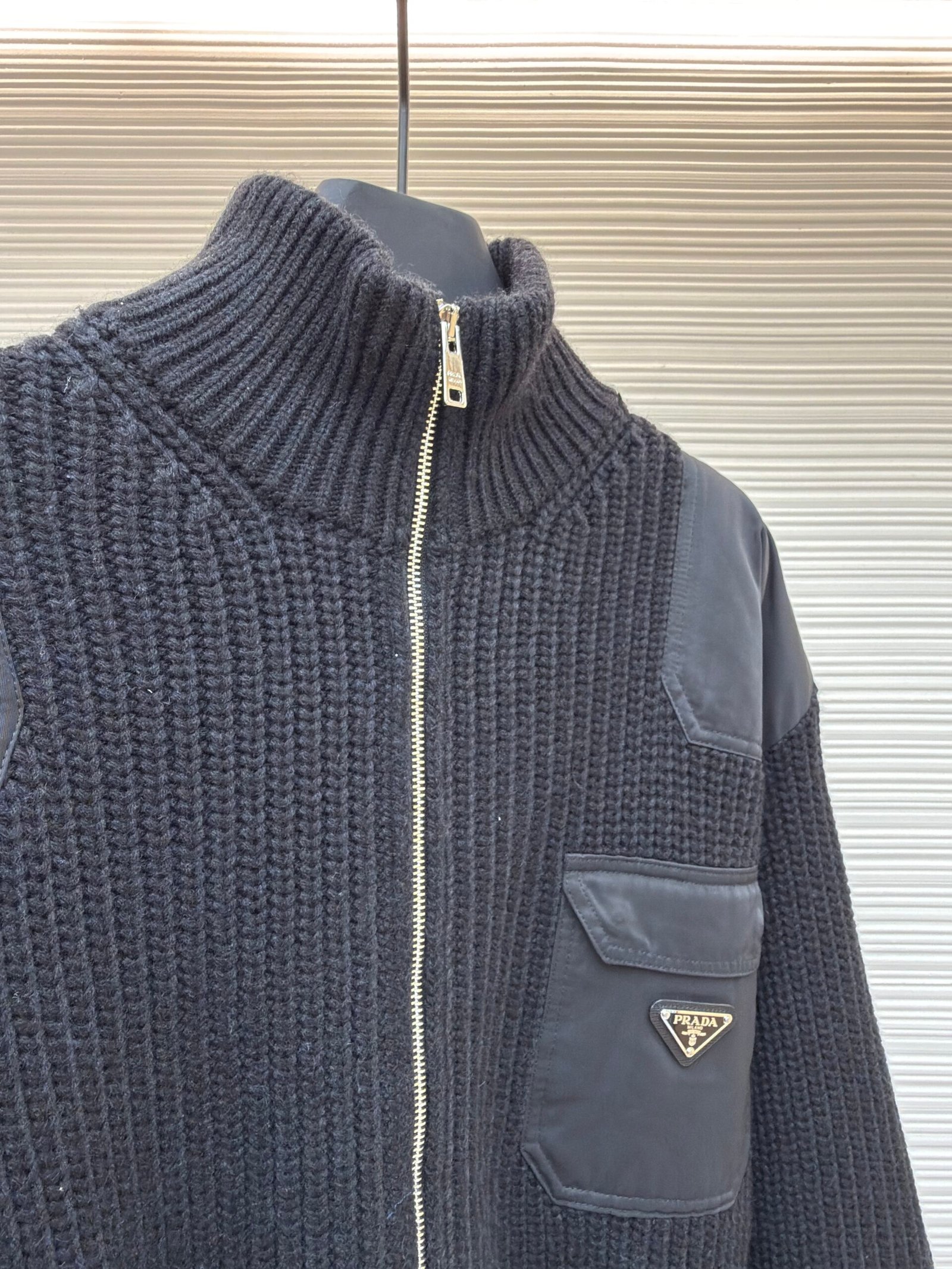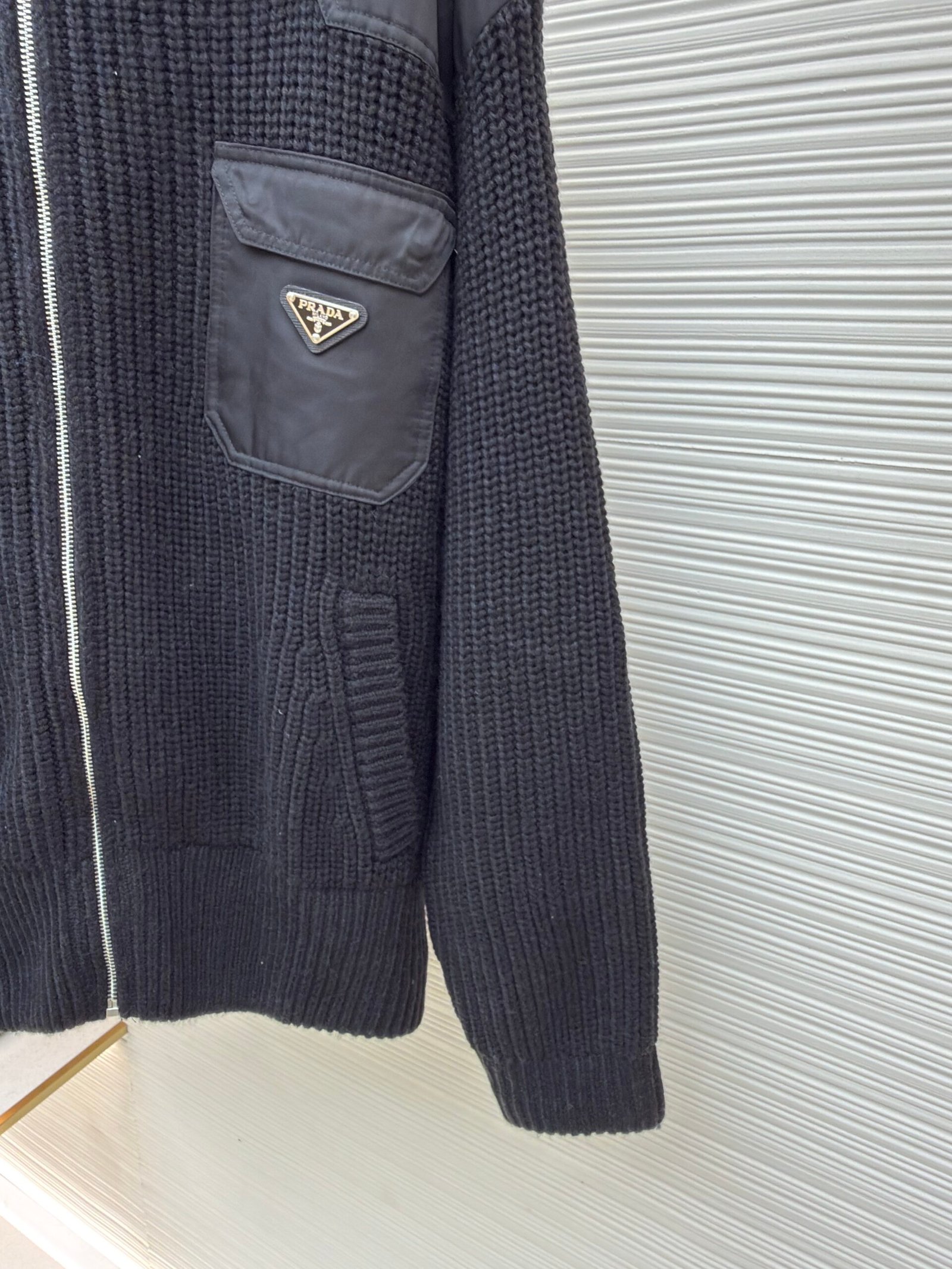Be the first to review “Prada triangle logo knitted sweater coat” Cancel reply