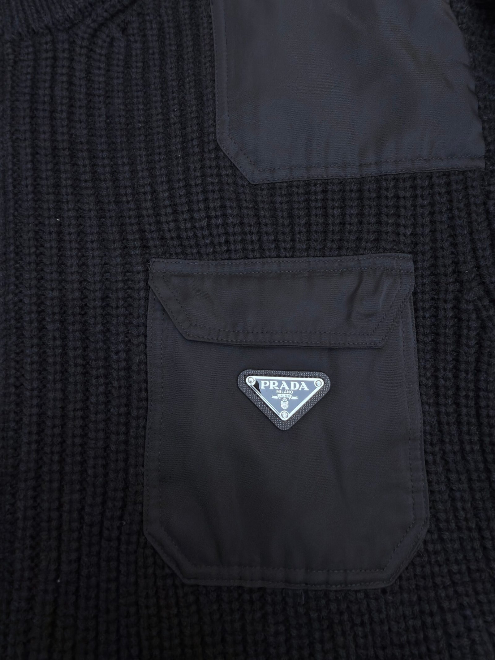 Prada triangle logo knitted sweater coat